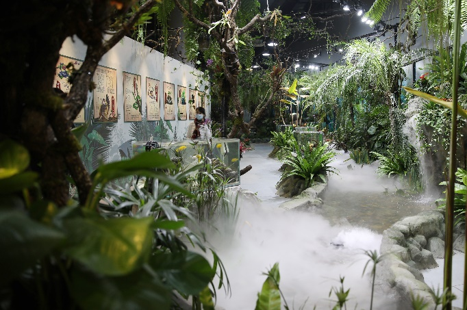 流水潺潺,郁郁葱葱,植被、动物、风木、山石和水流组成的世界,又让你穿越回森林之中,景观箱内栖息着鱼类、两栖类等不同动物,与场景无缝融合,共鸣成景。让你感受循环、更替、繁衍的森林物语。