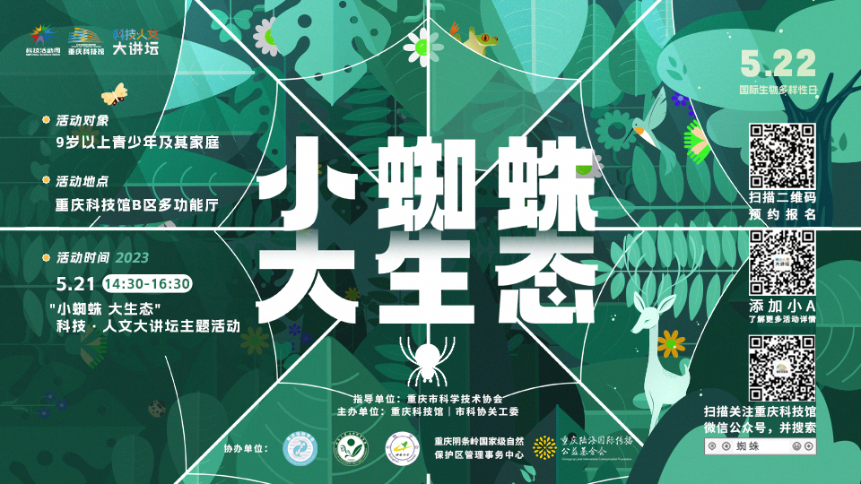 关注重庆科技馆微信公众号,发送“蜘蛛”,在活动推文中预约报名。