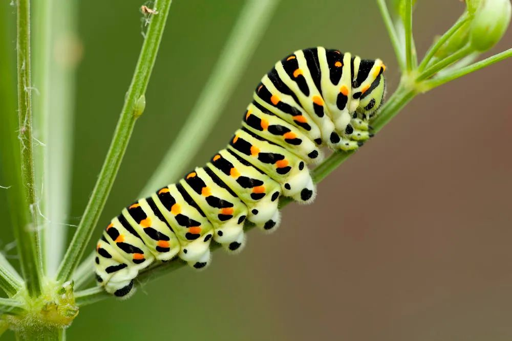 毛虫动作迟缓,身体非常柔软,它含有丰富的蛋白质,是各种鸟类和小型杂食动物喜爱的食物。毛虫作为昆虫,只有三对脚,但是毛虫身侧还能长出五对腹足。不过这些腹足并不是真正的脚,只是从腹部长出的肌肉而已。当毛虫在爬行的时候,腹足会帮助它们行进;当它们进食的时候,腹足可以帮助它们牢牢地抓住植物叶子,使它们不容易掉下去。